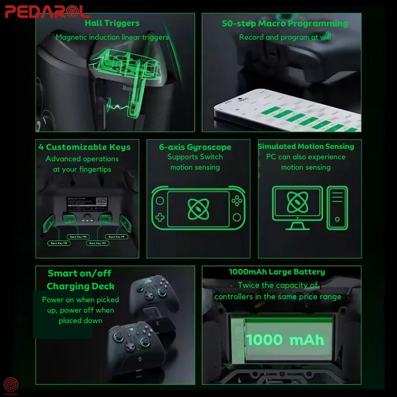 آنچه دسته بازی بلک شارک مدل Black Shark Dark Magician را به گزینه ای مطمئن تبدیل میکند، ماشه های Hall-sensor و ژیروسکوپ شش محوره آن است که باعث میشود تا کوچکترین حرکات با بالاترین دقت ثبت شوند. از طرفی وجود 4 کلید قابل شخصیسازی و اپلیکشن اختصاصی Shark Arsenal این امکان را فراهم می کند تا مطابق با سبک بازی خود دسته را تنظیم و بازی را مدیریت کنید. فرکانس پاسخدهی بالای 1000 کیلو هرتز تجربه ای بدون تاخیر را فراهم می کند که بسیار خیره کننده است.